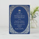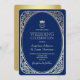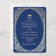 Elegante y formal, esta invitación a una boda dorada y azul marino presenta un monograma real con una corona dorada, rodeado de intrincados bordes botánicos de estilo Relieve metalizado. Perfecto para una lujosa y tradicional celebración boda, destaca las iniciales de la pareja y los detalles del evento con tipografía clásica. Ideal para los asuntos formales de corbata negra o para bodas nocturnos de lujo. Personalizar con sus propios nombres, fecha y ubicación para un toque eterno y regular.