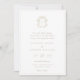 Escudo beige monograma, invitación a la boda. Escudo de monograma de arte de línea barroca Regency-Era de inspiración vintage. Características, una elegante tipografía beige diseño mezcla de escritura y negrita. El estilo de jardín estilo Chinoiserie con el respaldo.