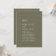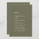 Esta moderna invitación a la boda en un monograma verde aceituna de moda es perfecta para un boda moderno. El diseño de boho en madera presenta una tipografía bohemia rústica única y elegante con un color verde de bosque mínimo. Personaliza tu invitación monogramada con tus iniciales.