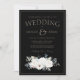 Invitación a la boda de Navidades blancos y negros en invierno - Una mezcla festiva de elegancia rústica y simplicidad mágica. Disfrute del encanto de la temporada con nuestra Invitación a la Boda de Navidades Florales Blancas de Invierno, una elección perfecta para parejas que buscan una celebración mágica y elegante. Delicadas flores blancas, enclavadas en un diseño rústico, sobre un llamativo fondo negro, crean un ambiente acogedor y festivo. La combinación intemporal de elementos de invierno, blanco y floral evoca la belleza de las vacaciones, por lo que esta invitación es ideal para un boda Navidad. Comparte la magia de tu día especial con los seres queridos a través de esta encantadora invitación, donde la sencillez de las flores blancas se une a la elegancia de un maravilloso país invernal.