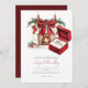 Celebra tu amor con nuestra clásica invitación a la boda de Navidades de Ilustracion rojo. Con una bonita chimenea de acuarela pintada adornada con decoraciones festivas, este diseño refleja el calor y el encanto de la temporada de vacaciones. Un anillo de diamantes en una elegante caja le da un toque romántico, lo que lo hace ideal para su boda de invierno. Invite a sus seres queridos a compartir su día mágico con esta sofisticada y encantadora invitación.