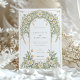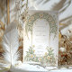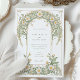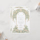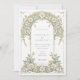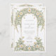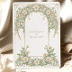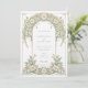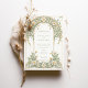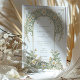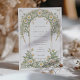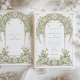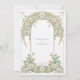 Esta elegante invitación a la boda presenta un diseño clásico de estilo Art Nouveau adornado con hermosas marfil y daisies verdes. La parte delantera de la tarjeta muestra unos intrincados motivos florales, entrelazados con elegantes baldaquines en suaves tonos pastel de marfil y verde. El diseño detallado crea un ambiente atemporal y romántico, perfecto para una celebración boda sofisticada. La parte trasera de la invitación continúa con el tema floral, destacando la fecha boda con un refinado arreglo de margaritas y hojas. Ideal para parejas que buscan una mezcla de elegancia tradicional y encanto artístico, esta invitación encarna la esencia del romance y la naturaleza.