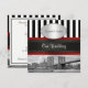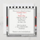 NYC Skyline Brooklyn Bridge, Boat Invitation Suite - Black White Stripe / Red Black Ribbon - Invitación a la Boda Elegante, elegante, Invitaciones a personalizables de moda y accesorios con vistas al East River sobre el icónico puente de Brooklyn y Edificio Municipal de la ciudad de Nueva York, con un barco que pasa por ahí. También tiene un patrón de rayas negras y blancas, una cinta negra y roja y una etiqueta de gradiente blanco con la elección de un marco de perlas color plata u oro. La imagen está en blanco y negro. Este producto forma parte de un conjunto de diseños de correspondencia que son de fácil personalizable para muchas ocasiones y eventos. Si necesita tarjetas RSVP separadas que coincidan, notas de agradecimiento, sellos, imanes, etiquetas de favor, tarjetas de acompañamiento, tarjetas de plaza, etiquetas de vino, menús, programas de eventos u otros accesorios, por favor revise nuestros otros listados. Si no ves un producto que te interese, o te gustaría ver este diseño en diferentes colores, con elementos de otros diseños, o con diferentes fotos de NYCisMyMuse que ves en nuestra tienda, por favor contáctanos y nos alegraremos de personalizar de un diseño para ti! Tenga en cuenta que se trata de un diseño gráfico y que no contiene telas, metales, gemas ni bordados reales. Todos los derechos reservados