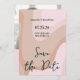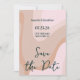 Boda de Ola Rosa Retro Guardar la Invitación de la Fecha Una elegante boda moderna Save the Date con un elegante guión negro sobre fondo de ola rosa, marrón y terracota retro. Personalice los detalles de su evento.