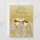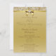 Elegantes invitaciones personalizadas para celebrar una boda de oro, 50 aniversario de bodas, con imágenes impresas de colores dorados brillantes, lentejuelas, joyas, patrón de gemas, imágenes de lazos y cintas doradas brillantes y hermosas joyas digitales con diamantes en un fondo degradado dorado con texto marrón. Tenga en cuenta: todas las invitaciones en Zazzle tienen imágenes planas impresas, no son lazos, diamantes o lentejuelas reales. Estas invitaciones elegantes, glamorosas y con mucho glamour para aniversarios de bodas de oro están decoradas e impresas en ambos lados. Hermosas, elegantes, modernas y actuales invitaciones para una fiesta de aniversario de cincuenta años. Si necesita ayuda para personalizar su producto, por favor contácteme a través de mi tienda. Estaré encantado de ayudar.