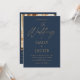 Presentamos nuestra invitación a escritura de escritura de Boda de oro azul de la Marina: Haga una declaración con nuestras elegantes invitaciones nupciales con tipografía moderna y lujosos acentos azul y oro de la Marina. Diseñadas con meticulosa atención a los detalles, estas invitaciones exudan sofisticación y estilo, marcando el tono de su día especial. El elegante fondo negro está adornado con un impresionante guión dorado, creando un sorprendente contraste que cautiva a los ojos. Personalice los detalles de su boda, desde la fecha y el lugar hasta los nombres de la novia y del novio, para crear una invitación personalizado que refleje su historia de amor única. Ya sea que esté planeando una moda urbana o una velada glamurosa, nuestra invitación a escribir estilo de Boda de Oro Azul de la Marina impresionará a sus huéspedes y dejará una impresión duradera. Aumente su papelería boda con esta exquisita suite de invitados que combina diseño moderno con elegancia intemporal.