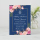 Tarjeta de invitación a la boda dorada azul color floral rosa Rubor azul - azul