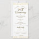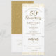 Una invitación y tarjeta de respuesta todo en uno para personalizar con los detalles de su celebración de bodas de oro número 50 en tipografía dorada chic. El reverso presenta confeti de corazón de amor dorado. La invitación incluye una tarjeta de RSVP que se puede cortar y detalles de información del invitado. Diseñado por Thisisnotme