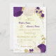 Invitación boda de oro de flores reales moradas blancas