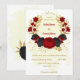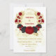 Invitación boda de oro de flores rojas y negras