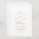 Esta minimalista tarjeta de invitación para bodas de oro es perfecta para un boda sencillo. El moderno diseño romántico presenta una tipografía clásica en oro y blanco, acompañada de una caligrafía rústica y elegante con un estilo de letra a mano vintage. Personalizable de cualquier color. Mantenga el diseño simple y elegante, tal como está, o lo personaliza añadiendo sus propios gráficos y obras de arte.
