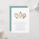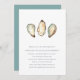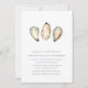 Esta invitación a la boda de moda costera incluye un trío de ilustraciones de ostras crema suave y acuática, con los detalles de su boda bajo las letras clásicas azul marino. Ideal para los amantes de la playa, el verano o los bodas náuticos.