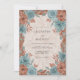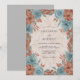 Los tonos cálidos de terracota y azules polvorientos y frescos se mezclan en este diseño botánico terroso. Las dahlias y rosas pintadas crean un arreglo floral exuberante con pétalos detallados y follaje suave. Esta paleta evoca un ambiente otoñal rústico, perfecto para un entorno al aire libre o estacional con estética bohemia.