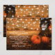 Invitaciones de boda al aire libre de otoño rústico con un fondo rural de bosque de otoño, luces de cuerda, calabazas y una plantilla de boda fácil de personalizar.