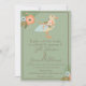 Combinando hermosos tonos de tierra, estas invitaciones a la boda se sitúan sobre un fondo verde. Un bonito pájaro beige y azul florido adornado. El marco es marrón con texto marrón correspondiente para la información de su boda. ¡Pida hoy tus hermosas invitaciones de boda!