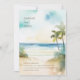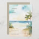 Invitación a la Boda de Palmeras Tropicales. Con estilo impresiona a sus bodas con esta hermosa boda tropical en la playa, azul océano y dorada, con palmeras tropicales, arena dorada, océano azul verdoso y horizonte. Esta bella invitación escénica da un ambiente tranquilo, tropical, a tu playa, a tu boda costera o de destino, y realmente marcará el tono para cualquier Hawaii, boda de aventura rodeado de azules, verdes y dorados, o simplemente flores doradas y arenosas del océano y ramos florales, junto con una decoración boda a juego. Una adición perfecta a cualquier celebración de bodas de playa, destino o destino de verano. Colectivo Dominical © por Rachel Hannah Gee