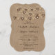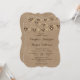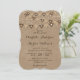 Ruidosa invitación de boda en papel kraft con un paquete burlap sobre un fondo de papel kraft adornado con luces de cuerda.