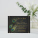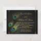 Hermoso fondo purpurina blanco y negro con elegantes invitaciones de boda de plumas de pavo real verde esmeralda. Esta elegante invitación a la boda de pavo real en negro y dorado se personaliza fácilmente para tu evento. Puede eliminar la imagen de fondo desde la parte posterior si desea elegir su propio color de fondo, como el negro.