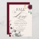 La invitación de la ducha nupcial Otoño Burgundy Fall in Love es un diseño cautivador que encarna la esencia rica y cálida de la temporada de otoño. Inspirada en los vibrantes tonos del otoño, esta invitación presenta tonos de burgundy profundos, evocando la belleza de las hojas crujientes de otoño.