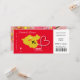 Una invitación de boda divertida pero elegante en un estilo de tarjeta de embarque/entrada para parejas que se casan en China que se muestra en una silueta de mapa en rojo, con corazones de amor dulces, silueta de avión y forma de corazón giratorio El reverso tiene un espacio para tu foto y detalles de contacto/RSVP sobre un patrón de oro oriental y flor de cerezo rosa