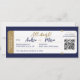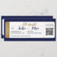 Invitación Boda De Pasos De Embarque De Caligrafía Azul Y Oro