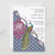 Invitación Boda de pavo real Damask elegante de Navy y Berry