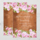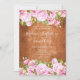 Con guirnaldas de rosas rosadas bonitas que enmarcan los detalles de tu boda personalizados en texto elegante sobre un fondo de madera rústica vintage. Diseñado por Thisisnotme©