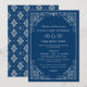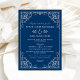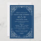 Invitación Boda de pergamino ornamentado de azul marino y bla