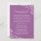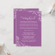 La elegante y única tarjeta de invitación incluye una redacción creativa para invitar a la fiesta de la boda a la cena del ensayo y del ensayo que se va a seguir. Las floridas florales que se desplazan acentúan el diseño. Esquema de colores: blanco y violeta / púrpura orquídea