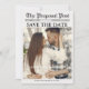 La boda minimalista de un periódico de caligrafía salva la fecha con tres fotos, una del novio y la novia de niños y una de ellos de adultos. Sumérjase a sus invitados en la encantadora narrativa de su historia de amor con titulares que celebren su viaje juntos. Desde la invitación de compromiso hasta la próxima fecha de boda, cada detalle se muestra con gusto en formato de periódico clásico, con imágenes cautivadoras y mensajes personalizados.