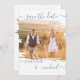 La boda de pincel rústico ahorra las invitaciones de fecha con una gran foto en el frente, que cambia y una en la parte posterior. Guión de tipografía de bonito para un ambiente moderno mínimo y simple. Esta muestra a una pareja de boho en el campo, ¡pero cualquier foto se verá genial! Si tu foto no encaja adecuadamente, siempre puedes recortarla ANTES de subirla a Zazzle.