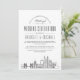 ¡Da una impresión y excita a tus futuros bodas invitados que viajarán de lejos y de lejos para tu ceremonia de boda! Esta divertida y formal invitación pone de relieve el maravilloso destino de la ciudad de Pittsburgh, Pennsylvania. Cuenta con un moderno ilustracion de estilo deco con un perfil de la ciudad que descansa en el fondo. Centrados encima de esto están los nombres de la pareja boda y la información del día de la boda en un texto de estilo abierto. Los elementos de texto están enmarcados por un borde de línea cuadrada que lo rodea. Todo ello en conjunto, con un tema de color blanco y negro neutro y clásico. Al revés de la invitación hay una opción para una foto de la pareja, o una foto de la ciudad anfitriona. La imagen también se puede eliminar para mostrar en su lugar un fondo gris de carbón vegetal profundo, para complementar el aspecto y la sensación del frente. Esta invitación es una manera alegre y elegante de presentar su evento boda a sus futuros invitados.