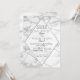 Diseño geométrico moderno invitación a la boda en mármol blanco y plateado y centro de acento con forma de diamante. Esta invitación a una boda de estilo Art Deco, inspirada en la época de la moda, es ahora tendencia con su estilo artístico moderno, popular para las bodas más elegantes de la actualidad, con sus líneas geométricas de plata y su centro de forma de diamante.