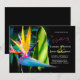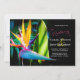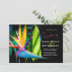 Esta hermosa invitación de boda de destino floral para boda de playa tropical presenta una elegante flor de Ave del Paraíso con tonos de rosa, amarillo, naranja, azul y verde sobre un fondo negro oscuro y una fuente de letra manuscrita de moda en rosa. Fácil de personalizar con la información de su boda. Esto es perfecto para la boda de playa, boda tropical, exótica o boda de destino en Hawái, Florida, México, el Caribe o América Central o del Sur. Fotografía del Ave del Paraíso y diseño © de T.K. Goforth. Todos los derechos reservados.