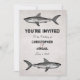 Invitaciones de bodas de marea de tiburón en tonos negros, blancos y grises con un fondo de estilo vintage. Perfecto para bodas temáticas de playa o de destino.