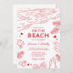 Añade un toque único a tu día de bodas con nuestras extravagantes invitaciones de boda de destino de playa a mano. Cada diseño es una pieza de arte, con ilustraciones de doodle rojos y divertidos sobre un fondo blanco resplandeciente. Fácil de personalizar con los detalles de su evento, estas invitaciones seguro que deleitarán a sus invitados y marcarán el ambiente para su día especial.