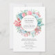 Tarjeta de invitación a bodas en la playa de verano en acentos de coral y verde azulado diseñado para ser rápida y fácilmente adaptada a las especificaciones de tu evento.