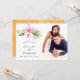 Tarjetas de agradecimiento de boda de playa con acuarela con hibiscos naranjas diseñadas para ser personalizadas rápida y fácilmente según los detalles de su evento.