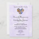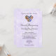 Una invitación de boda dulce y elegante. El fondo es un patrón de acuarela púrpura. Un diseño de acuarela de pluma en forma de corazón en la parte superior. Romántico y lindo.