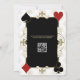 Diseño de tarjeta temática única de Casino Royale y Art Deco de los años 20. Cuenta con estilo art déco vintage, un marco dorado falso de Hollywood antiguo de los felices años veinte con Fleur-de-lis, un par de dados, palos de cartas de juego (que simulan cartas de juego), sobre fondo blanco dorado con patrón Art Déco. Se utilizan palabras especiales como en un juego de póquer. En la parte posterior, patrón Art Déco dorado falso, código QR para RSVP y sitio web de información. Utilice la herramienta Personalizar para agregar su información. Para más información, visite mi Colección de Casino.
