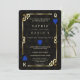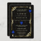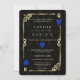 Único Casino Royale, diseño de cartas con tema art déco. Cuenta con estilo art déco vintage, un antiguo marco roto de Hollywood de la década de 1920 con Fleur-de-lis de falso foil dorado, corazones azules, Q y K en dos esquinas (simulando cartas de juego), sobre un fondo con patrón art déco dorado y negro. Se utilizan palabras especiales como en un juego de póquer. En la parte posterior, patrón art déco de falso oro e iniciales entre palos de cartas de juego. Utilice la herramienta Personalizar para agregar su información. Para más información, visite mi Colección de Casinos.