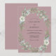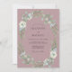 Este diseño presenta un exuberante arreglo botánico de acuarela sobre un suave fondo malva. La obra de arte incluye follaje de eucalipto verde salvia, anémonas blancas prístinas y pequeñas flores azules. Su estética serena y aireada es perfecta para un evento romántico de primavera o campo. El estilo pintado a mano proporciona un toque suave y natural a la obra de arte.