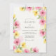 Las flores acuarela de color rosa y amarillo soleado crean un borde suave y romántico. Las delicadas hojas verdes proporcionan un toque fresco y orgánico al diseño pictórico. Esta estética captura la esencia de una brillante mañana de primavera, con elementos florales artísticos que recuerdan a las flores de cerezo y las flores silvestres sobre un fondo blanco limpio.