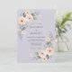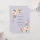 Este diseño presenta un suave fondo de lavanda acentuado por delicadas flores de acuarela en tonos de melocotón y albaricoque. Elegantes rosas y exuberante follaje verde crean una atmósfera romántica perfecta para un evento de temporada. La paleta de colores suaves ofrece una estética sofisticada y etérea.