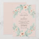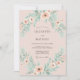 Este diseño presenta un suave fondo rosa rubor adornado con delicadas rosas melocotón y exuberante vegetación. Los elementos botánicos incluyen hojas de eucalipto verde salvia y follaje similar a un helecho, creando una atmósfera romántica y aireada. Perfecto para un tema de primavera estacional, la obra de arte evoca una sensación de elegancia natural y tranquilidad.