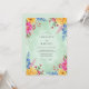 Este diseño presenta un fondo suave de lavado de acuarela verde menta acentuado por racimos florales vibrantes. Rosas rosadas y amarillas exuberantes se combinan con espuelas de caballero azules y delicadas bayas rojas para crear una atmósfera caprichosa. El estilo pictórico aporta un ambiente romántico y artístico a tu día especial, perfecto para una ceremonia estacional brillante.