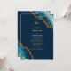 Un hermoso diseño de gema de cristal de geo azul y oro con acentos purpurinas de oro. Este elegante diseño de mármol combina los tonos azules y el oro para crear un sofisticado arte abstracto. La combinación de los colores azul y dorado crea un estilo sofisticado, moderno y de moda. Elegante diseño de invitación a la boda con elementos modernos. La sencilla configuración de la tipografía le da un estilo distinto. También están disponibles artículos de papelería para bodas y otros formatos de invitación para bodas.
