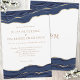 Moderno y sofisticado diseño de acuarela de mármol azul marino y blanco agate con falso purpurina dorado. Perfecto para las parejas que buscan un toque de glamour y elegancia que les dé un tono a un gran día memorable. El reverso presenta las iniciales de su monograma o deje en blanco si lo prefiere.