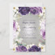 Invitación Boda de Purpurina floral blanco morado romántico