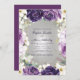 Elegante y romántica invitación a la boda con flores pintadas a mano en blanco y violeta y hojas verdes sabrosas acentuadas con purpurina dorado. Comuníquese conmigo para obtener ayuda con sus personalizaciones o para solicitar productos adicionales que coincidan con Zazzle para sus eventos de boda o boda.